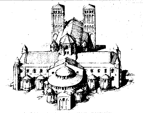 A Reconstruction of the Cathedral of Santiago as It May Have Looked in the Middle Ages